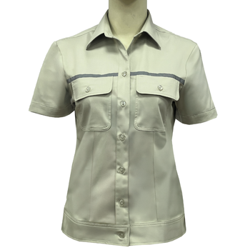 Logo personnalisé Chemise à col à manches courtes pour femmes Meilleur uniforme de bureau avec bordure bleue Style décontracté de couleur blanche