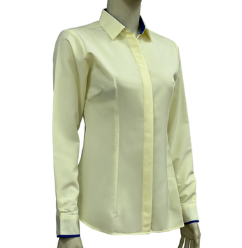 Kadın yüksek kaliteli Polyester Blend ofis gömlek uzun kollu mavi kontrast sarı renk ön işlemeli OEM/ODM mevcut